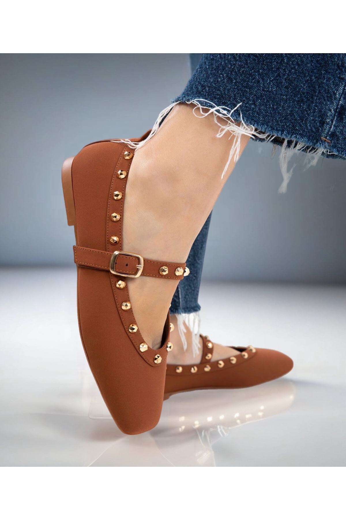 Kadın Gold Detaylı Taba Babet