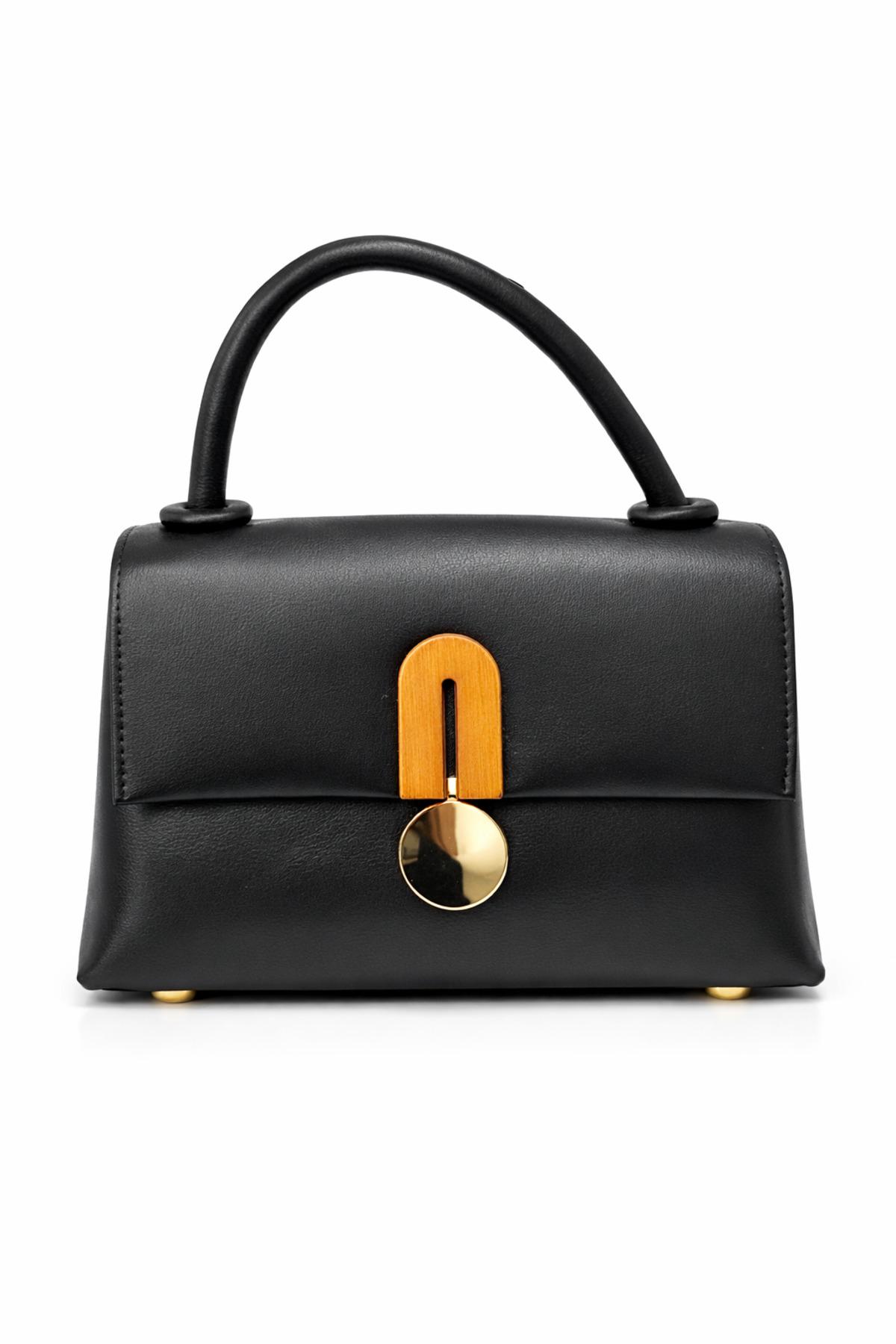 Kadın Ççs Ahşap Detaylı Çift Fermuarlı Çanta