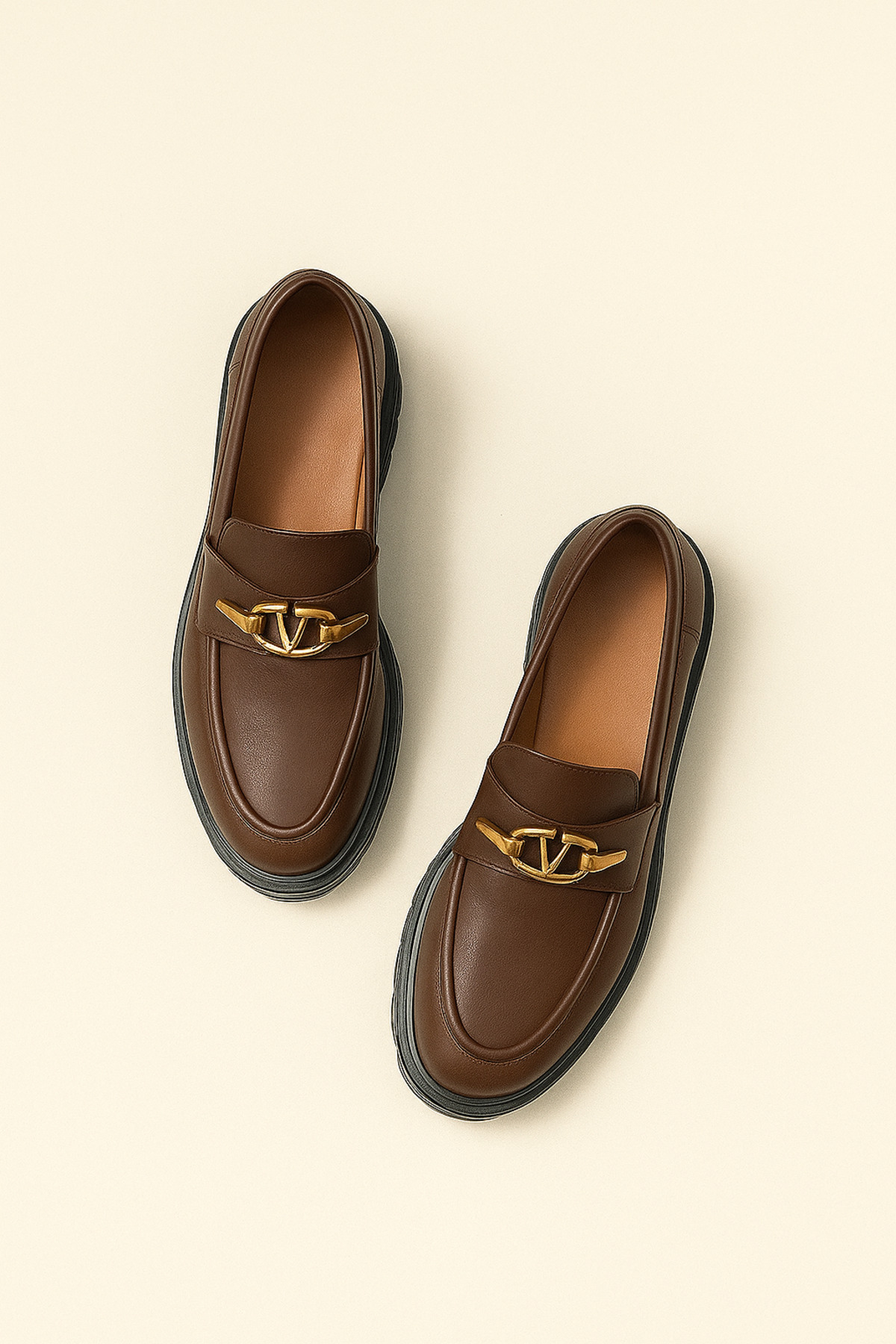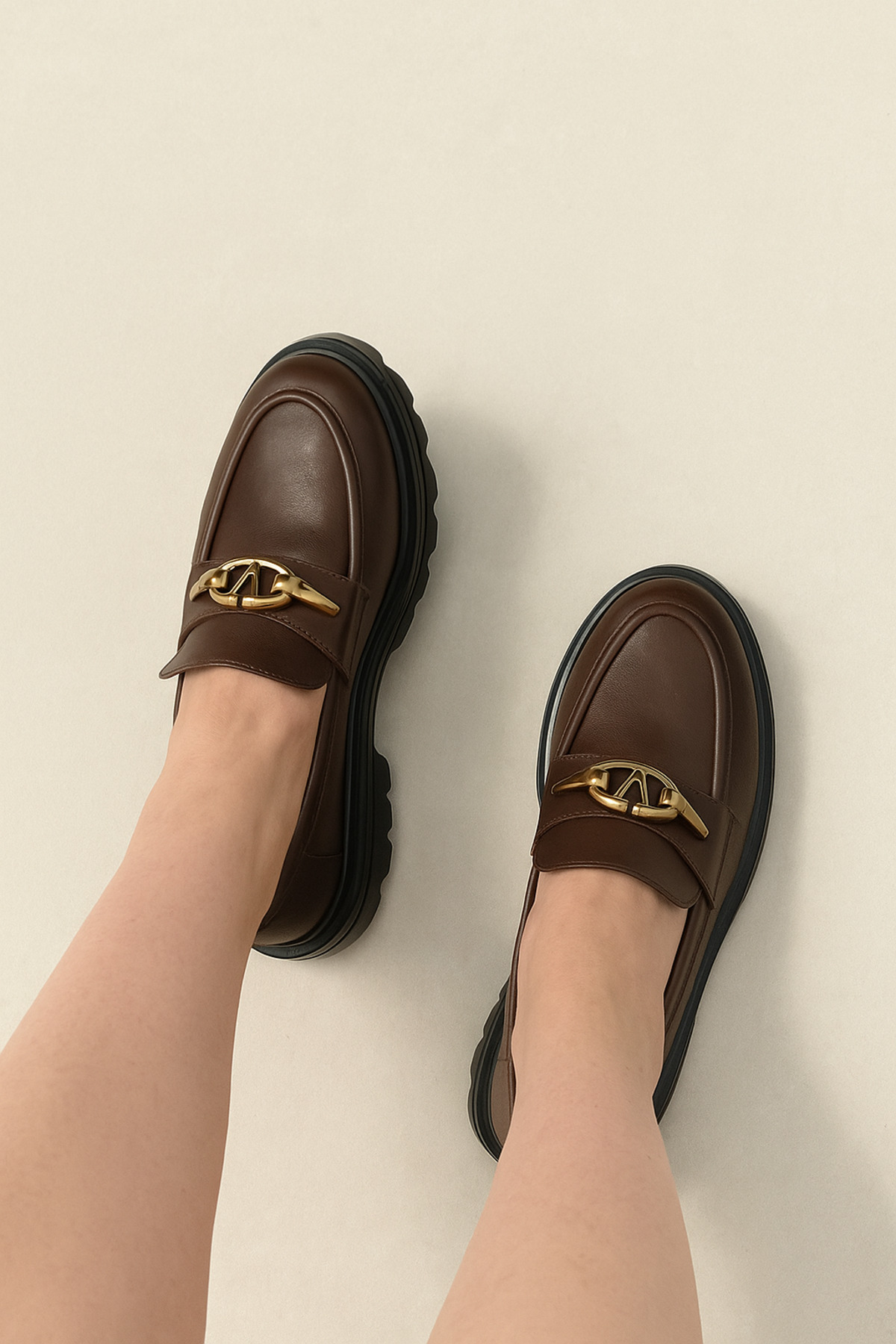 Kadın Gold Tokalı Kahve Loafer