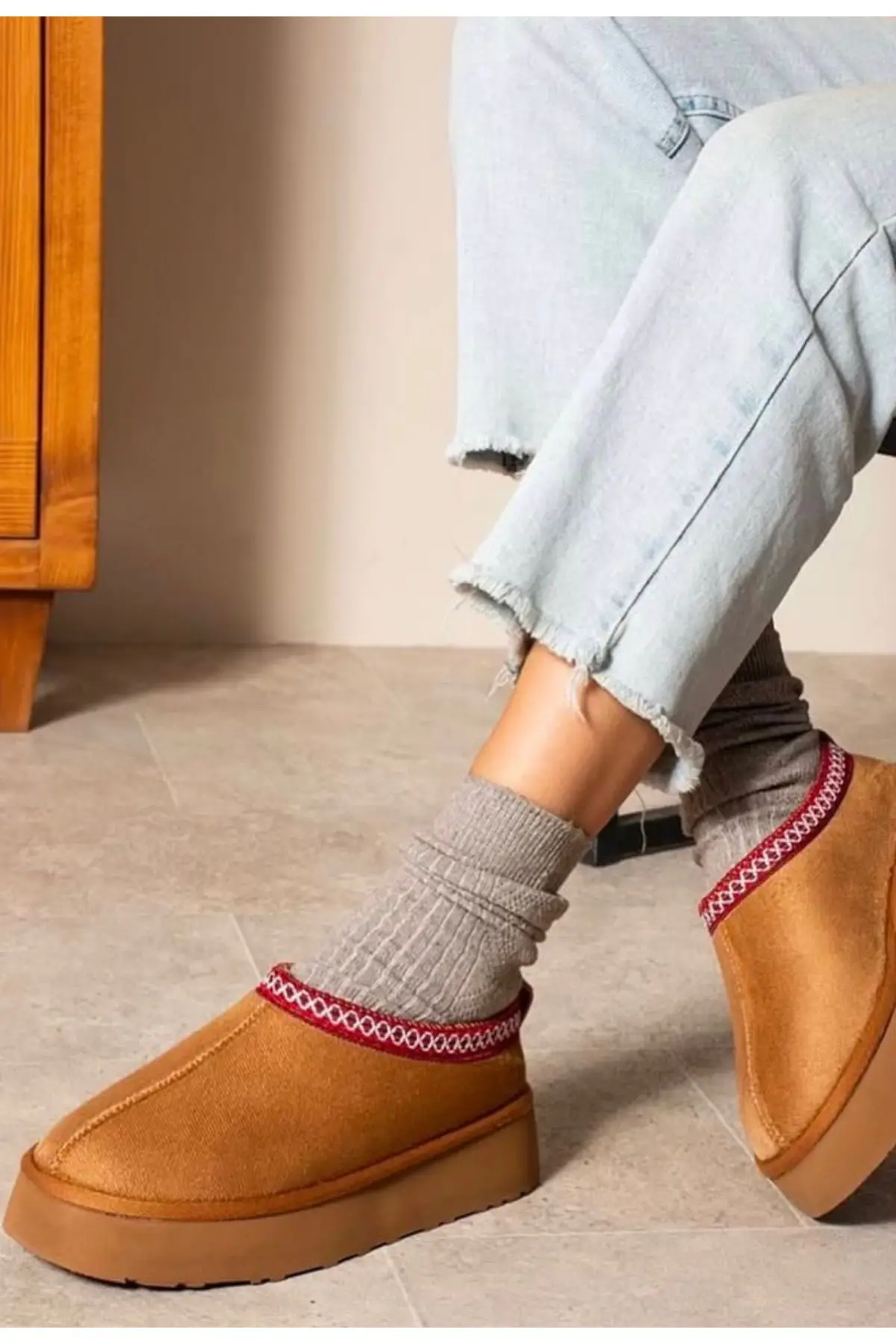 Kadın içi kürklü kalın taban günlük kışlık taba terlik