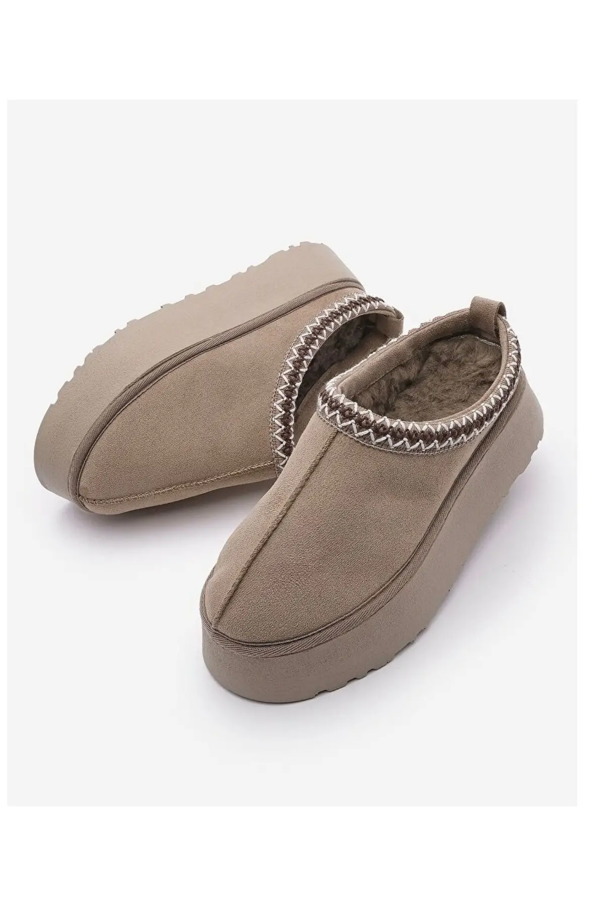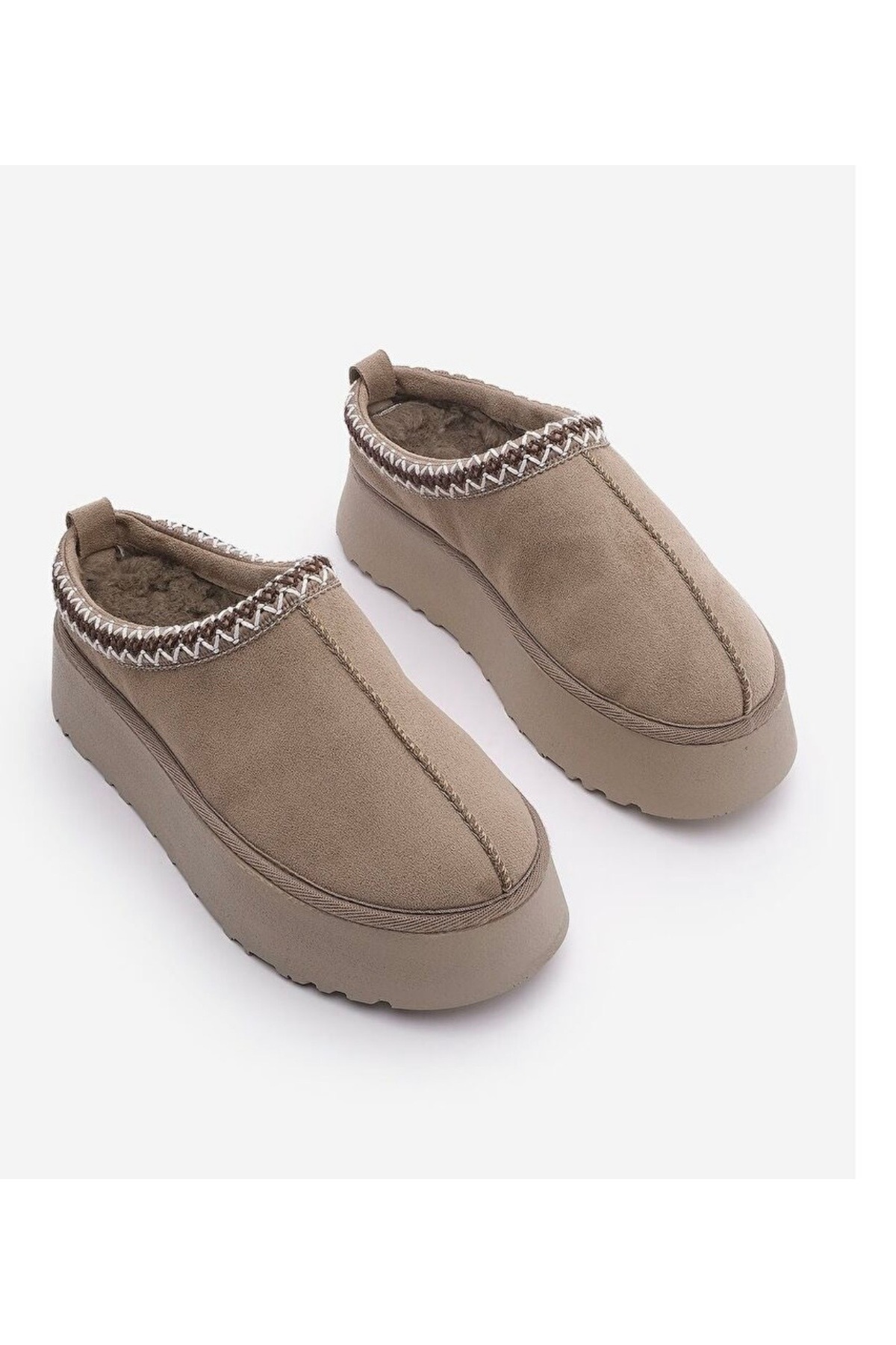 Kadın içi kürklü kalın taban günlük kışlık terlik vizon süet