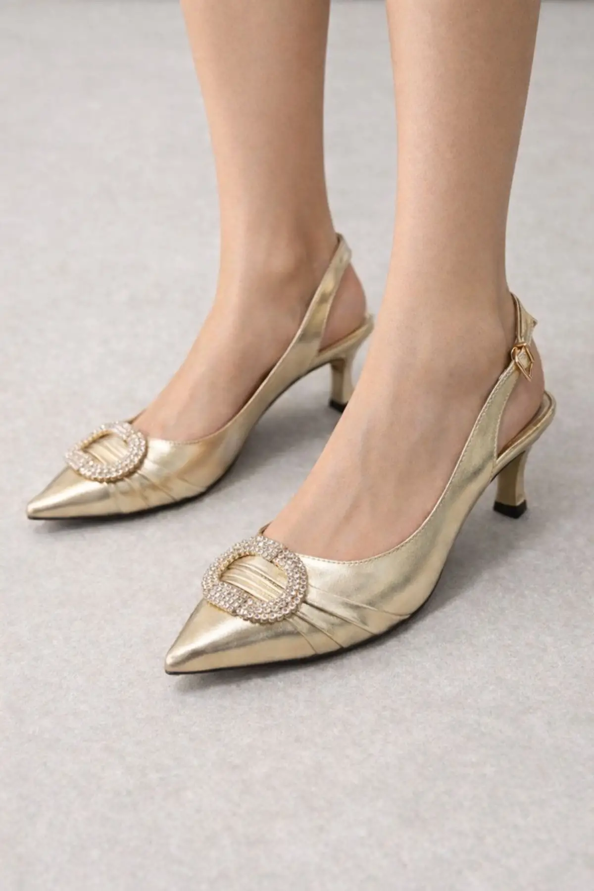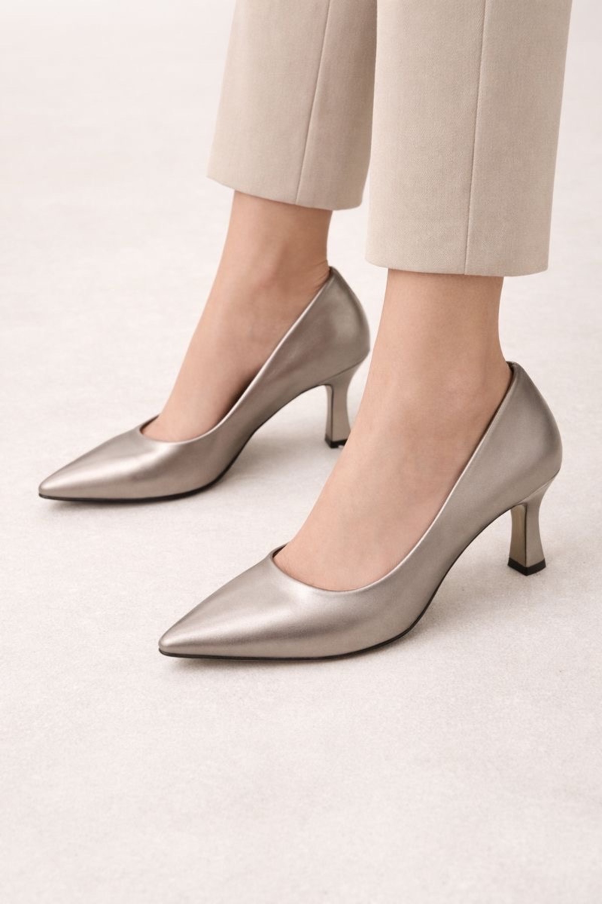Kadın Sivri Burun Vizon Orta Topuk Ayakkabı